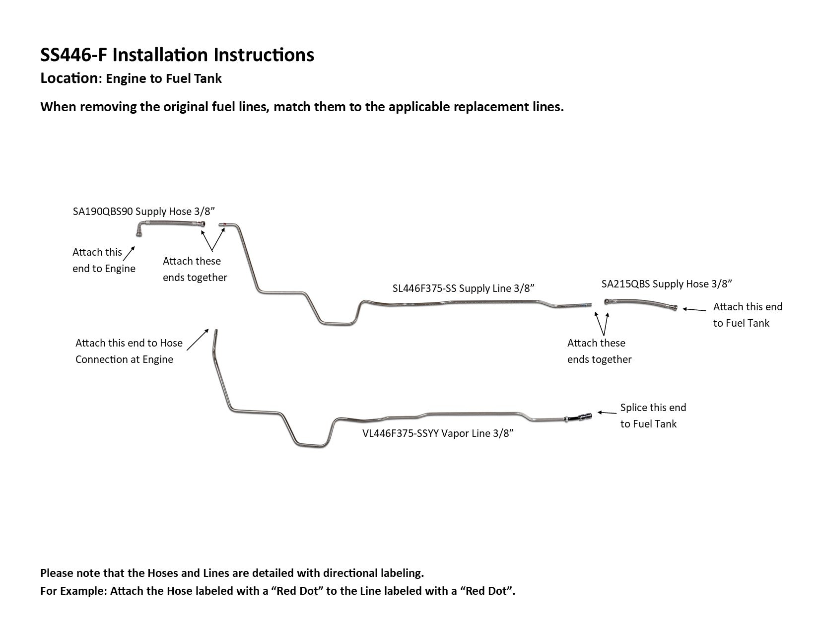 1 Supply Line 3/8", 1 Vapor Line 3/8", Hose to Engine Connection, Hose to Fuel Tank