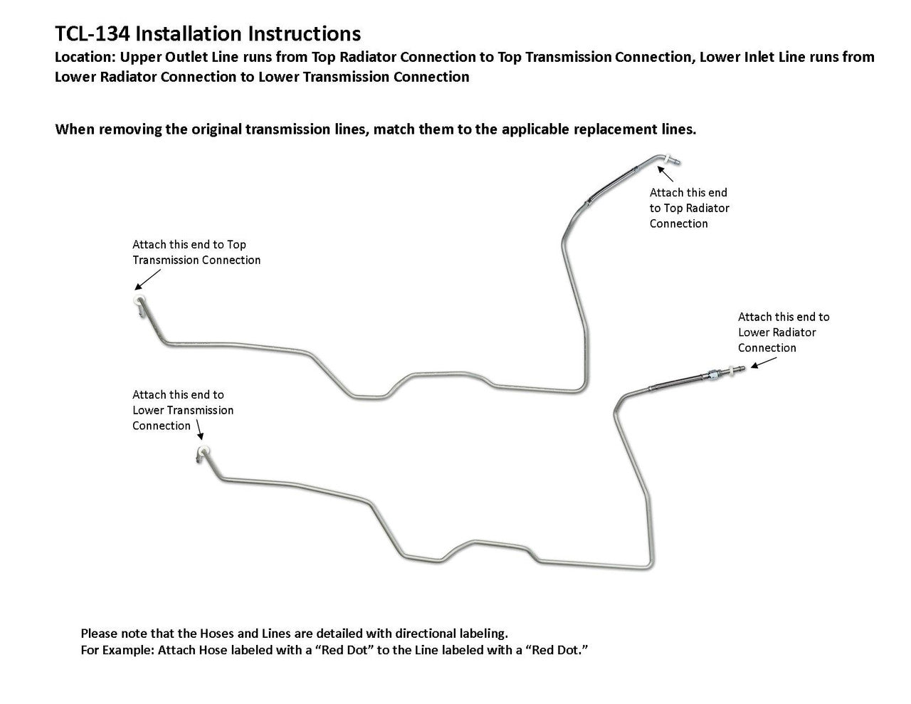 La línea de salida superior va desde la conexión del radiador superior hasta la conexión de transmisión superior, la línea de entrada inferior va desde la conexión del radiador inferior hasta la conexión de transmisión inferior