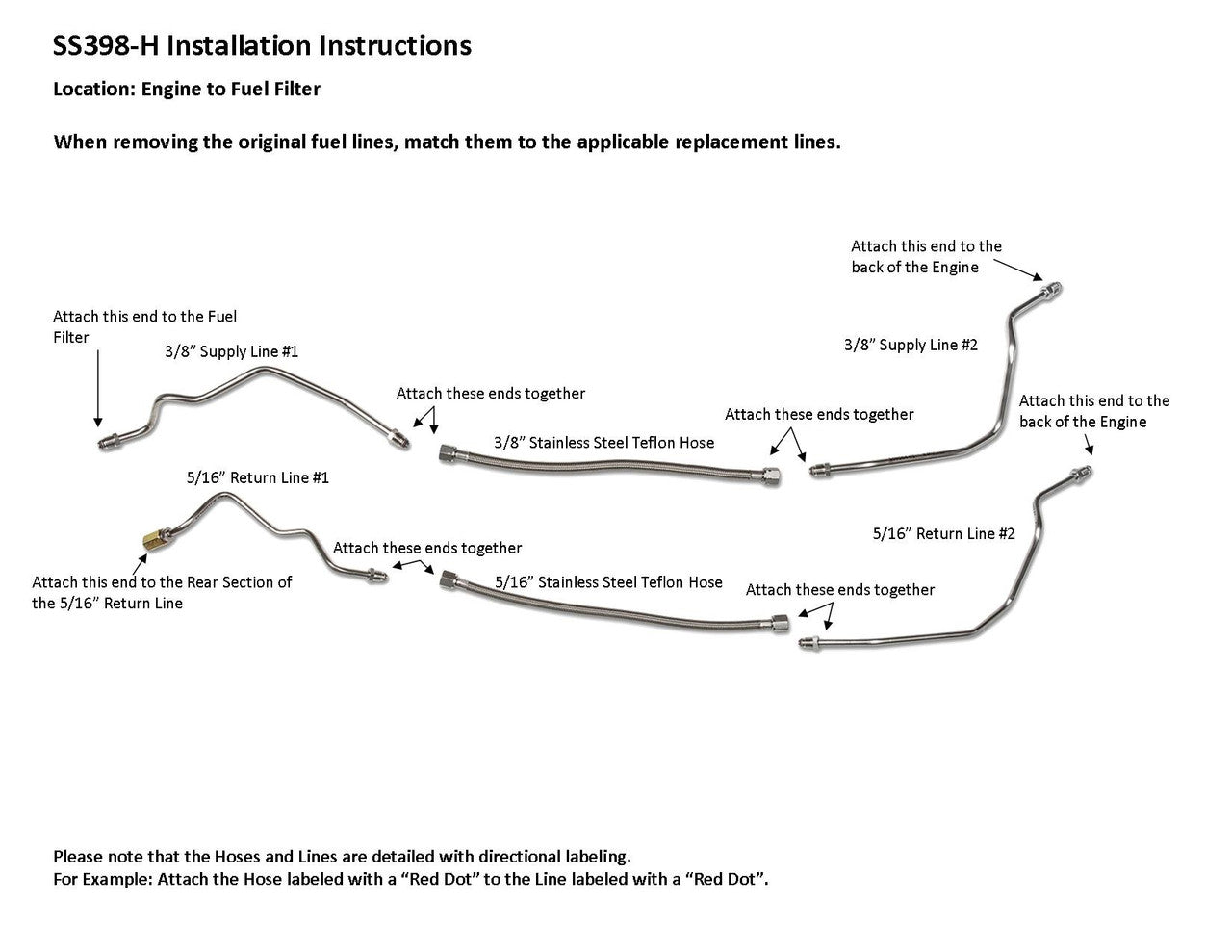 Todas las mangueras están hechas de teflón trenzado de acero inoxidable con accesorios estilo OE.