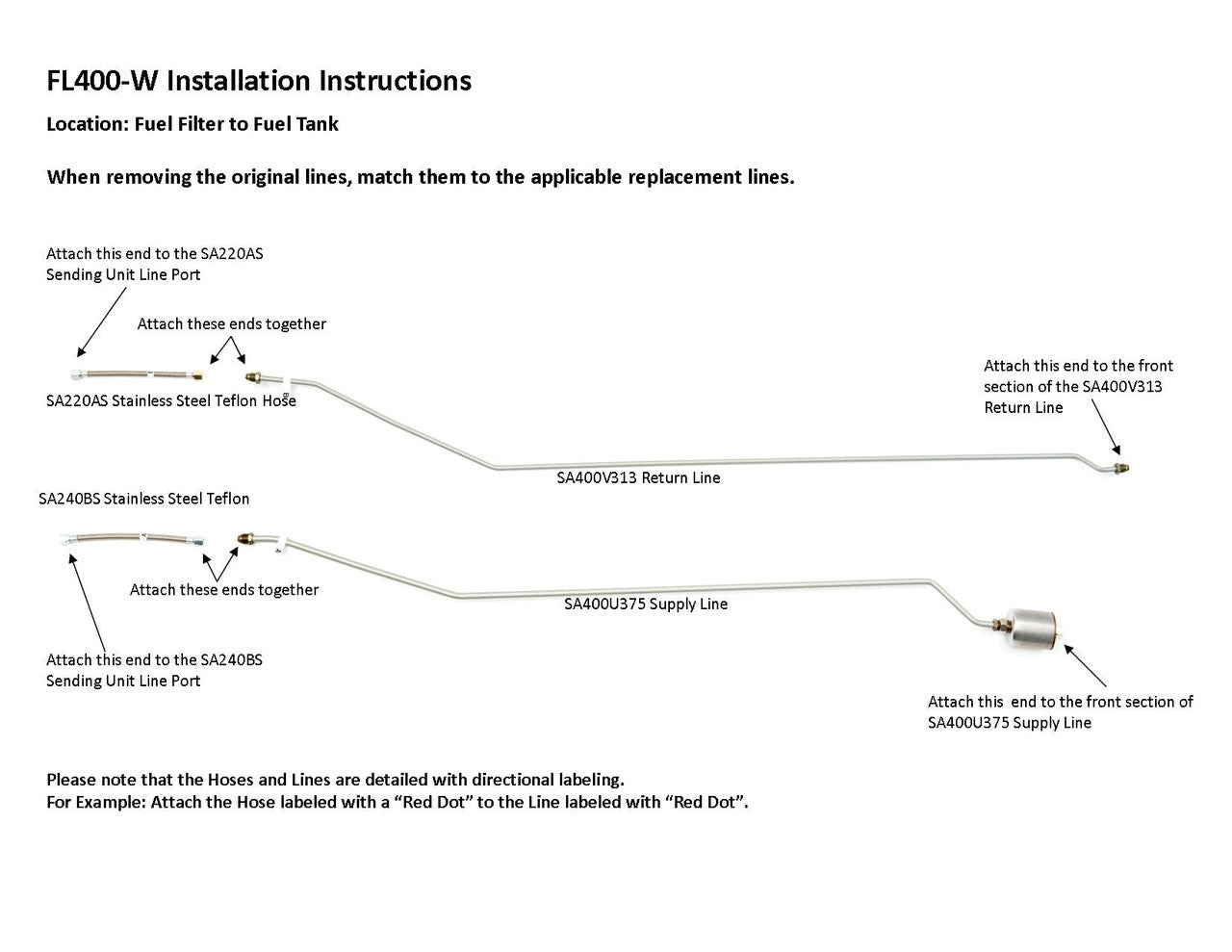 1 supply line 3/8", 1 return line 5/16", hoses to sending unit connection, 1 fuel filter
