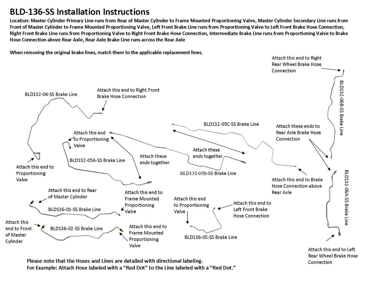 1 línea primaria de cilindro maestro de 3/16", 1 línea secundaria de cilindro maestro de 3/16", 1 línea de freno delantero izquierdo de 3/16", 1 línea de freno delantero derecho de 3/16", 1 línea de freno intermedio de 3/16" (en 3 secciones fáciles de instalar), 1 línea de cruce de eje trasero (2 secciones), NO incluye mangueras de freno
