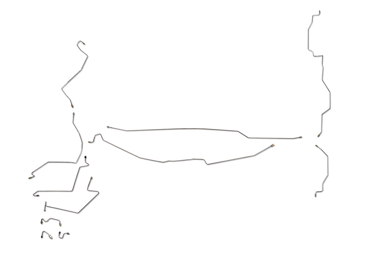 2 líneas de freno principal de cilindro maestro de 3/16", 1 línea de freno secundario de cilindro maestro de 1/4", 1 línea de freno secundario de cilindro maestro de 3/16", 1 línea de freno delantero derecho de 3/16" (2 secciones), 1 línea de freno intermedio de 3/16" (en 3 secciones fáciles de instalar), 1 línea de cruce de eje trasero de 3/16" (2 secciones), NO incluye mangueras de freno