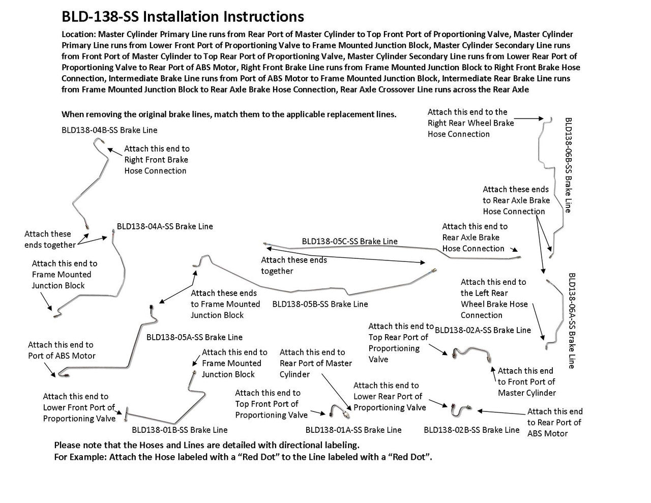 Tenga en cuenta:Antes de instalar la línea de freno, será necesario quitar el codo de envío de las líneas etiquetadas BLD138-05B-SS y BLD138-05C-SS. Vea el video a continuación sobre cómo quitar el codo de envío