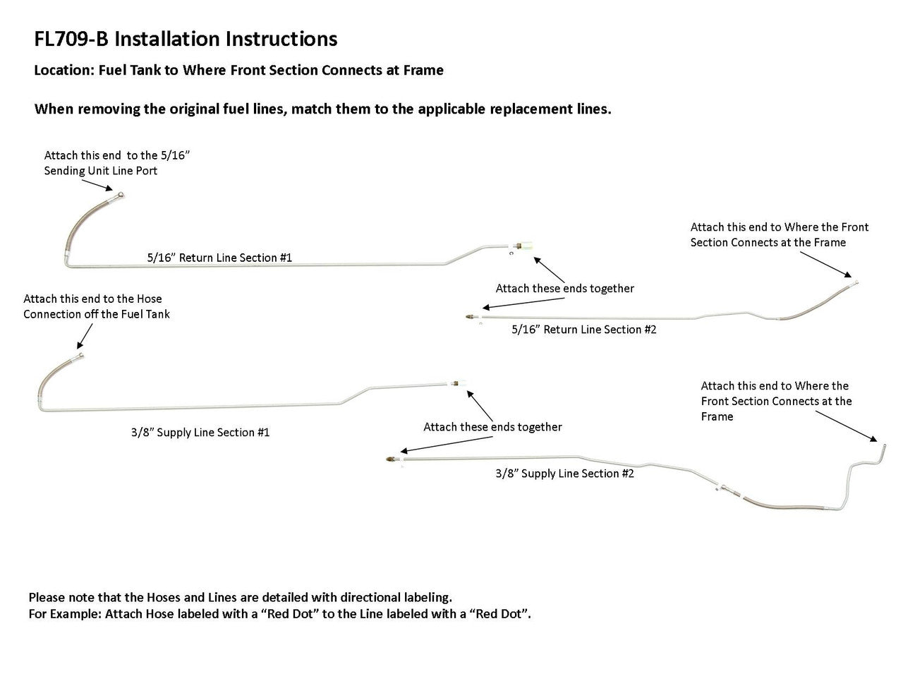 1 supply lines 3/8" ( in 3 easy to install sections), 1 return line 5/16" ( in 2 easy to install sections), hoses to engine connection, hose to sending unit connection, 2 unions