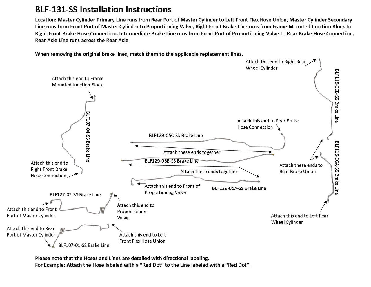 Tenga en cuenta:Antes de instalar la línea de freno, será necesario quitar el codo de envío de las líneas etiquetadas BLF129-05B-SS y BLF129-05C-SS. Vea el video a continuación sobre cómo quitar el codo de envío