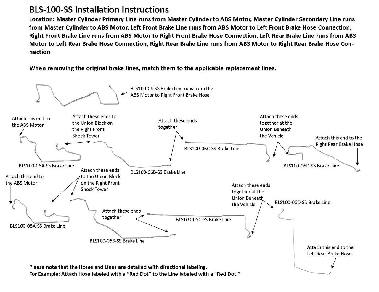 Tenga en cuenta:Antes de instalar la línea de freno, deberá quitarse un codo de envío de la línea con la etiqueta BLS100-06D-SS. Vea el video a continuación sobre cómo quitar el codo de envío