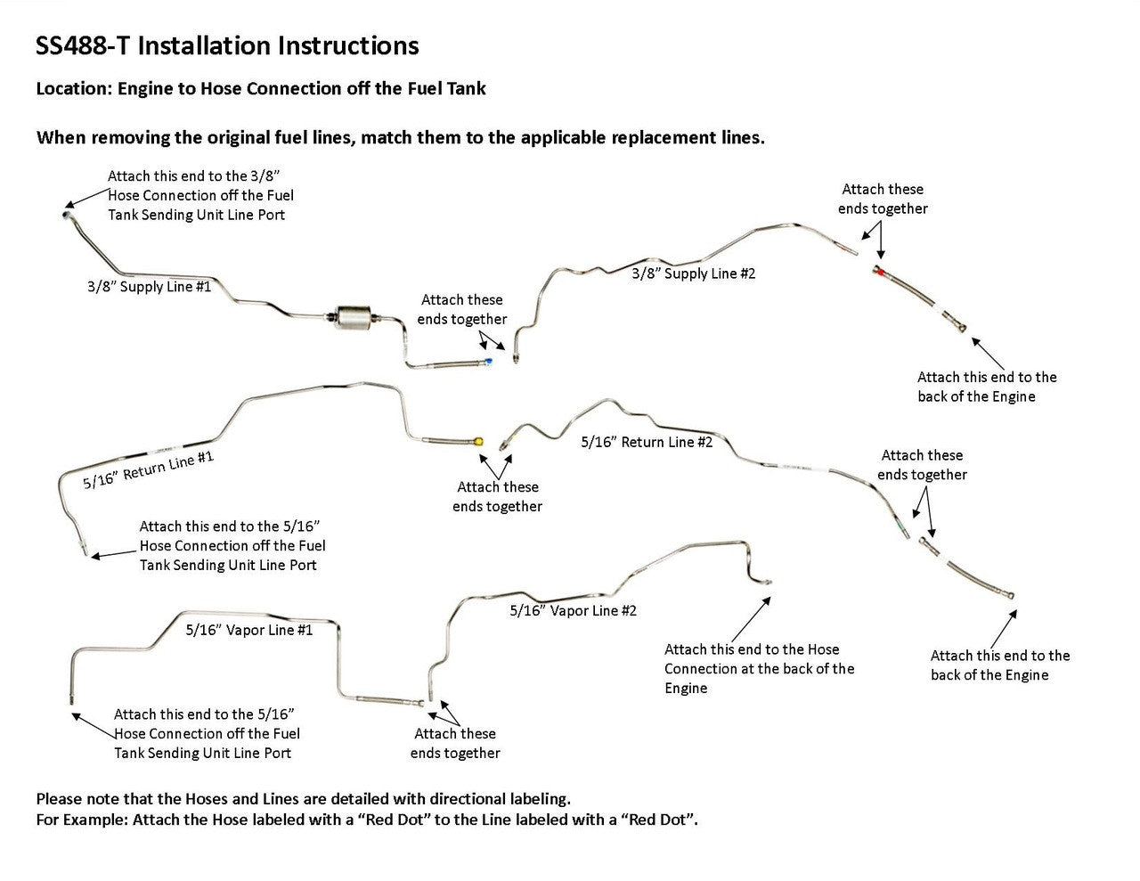 Les conduites en nylon entre la conduite de carburant et le réservoir de carburant ne sont pas incluses. Nous ne fabriquons pas les conduites en nylon pour ce véhicule. Cependant, vous pouvez acheter un kit de réparation en nylon,3069-01, qui se fixera à votre ligne en nylon existante, fournissant un nouveau connecteur pour que les lignes d'alimentation et de retour puissent s'y connecter.