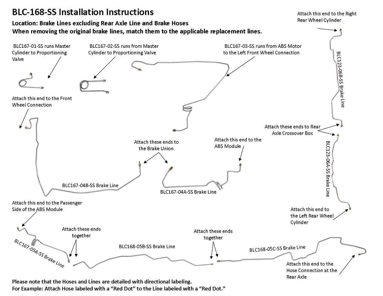 Veuillez noter:Avant d'installer votre conduite de frein, un coude d'expédition devra être retiré de la conduite étiquetée BLC167-03-SS et BLC167-04B-SS. Regardez la vidéo ci-dessous pour savoir comment retirer le coude d'expédition