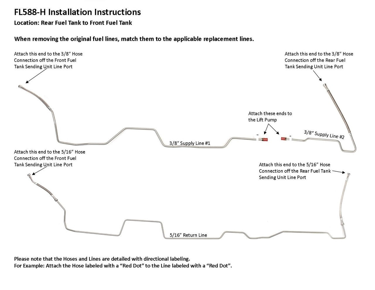 Ensemble de conduites de carburant auxiliaires GMC Sierra 2007 C/K Reg Cab, Cab & Chassis 161,5" WB 6,6L Diesel avec code moteur LLY, LBZ FL588-H2D