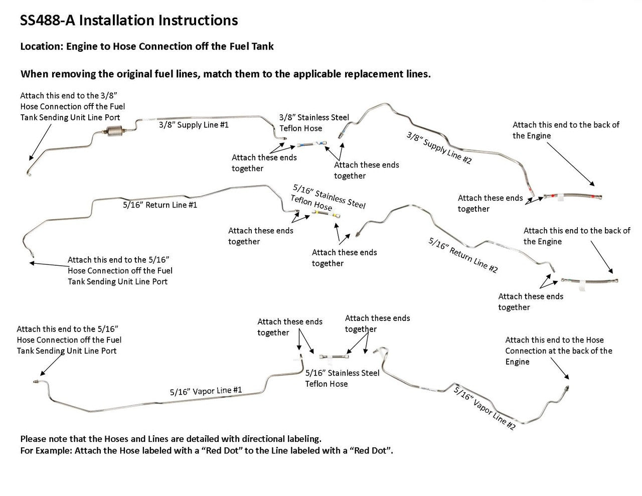 Conduites en nylon entre les conduites de carburant et le réservoir de carburant :Les conduites en nylon entre la conduite de carburant et le réservoir de carburant ne sont pas incluses. Nous ne fabriquons pas les conduites en nylon pour ce véhicule. Cependant, vous pouvez acheter un kit de réparation en nylon,3070-01, qui se fixera à votre ligne en nylon existante, fournissant un nouveau connecteur pour que les lignes d'alimentation et de retour puissent s'y connecter.