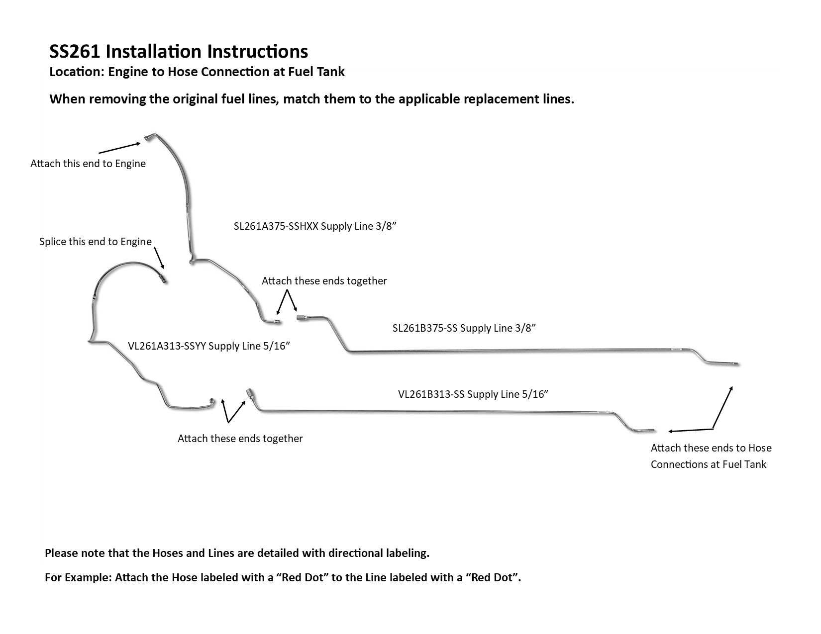 Please Note: Before installing your fuel line, a shipping bend will need to be removed from the lines labeled SL261B375-SS and VL261B313-SS. See the video below on how to remove the shipping bend.