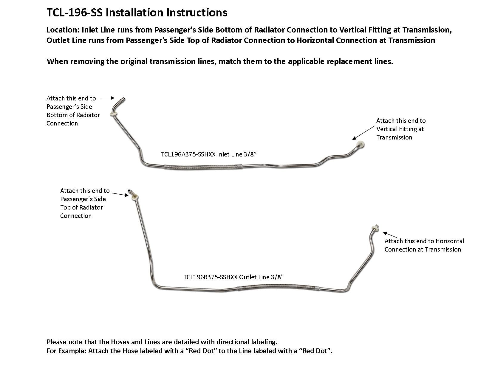 Stainless Steel Transmission Line Set for 2011 Buick Lucerne w/Trims: CX/CXL/CXL Luxury/CXL Special Edition/CXL Ultra for 3.9L engines.