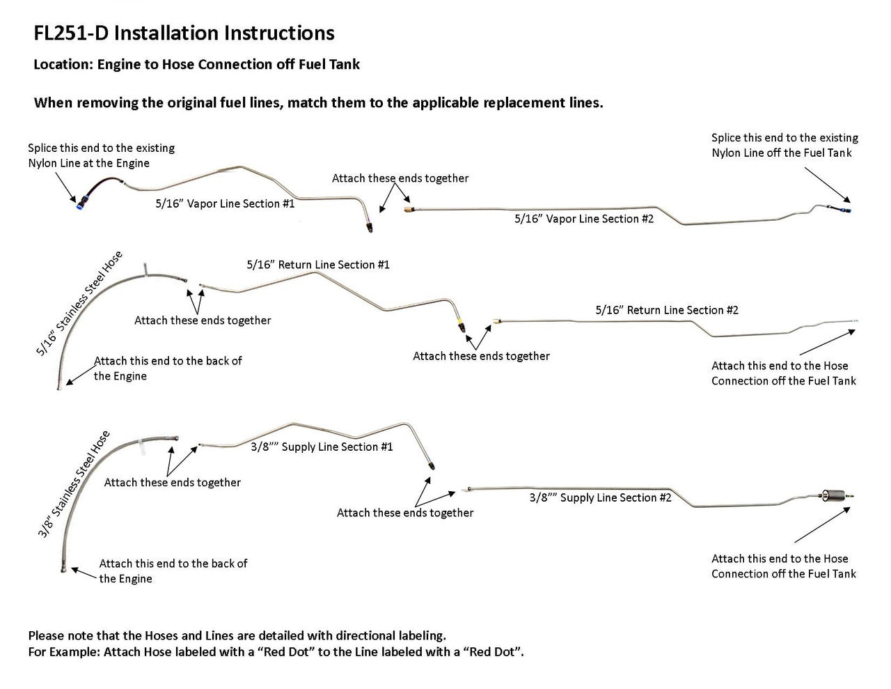Please Note: Before installing your fuel line, a shipping bend will need to be removed from the lines labeled RL251B313A2, SL251B375A2, and VL251B313A2. See the video below on how to remove the shipping bend.