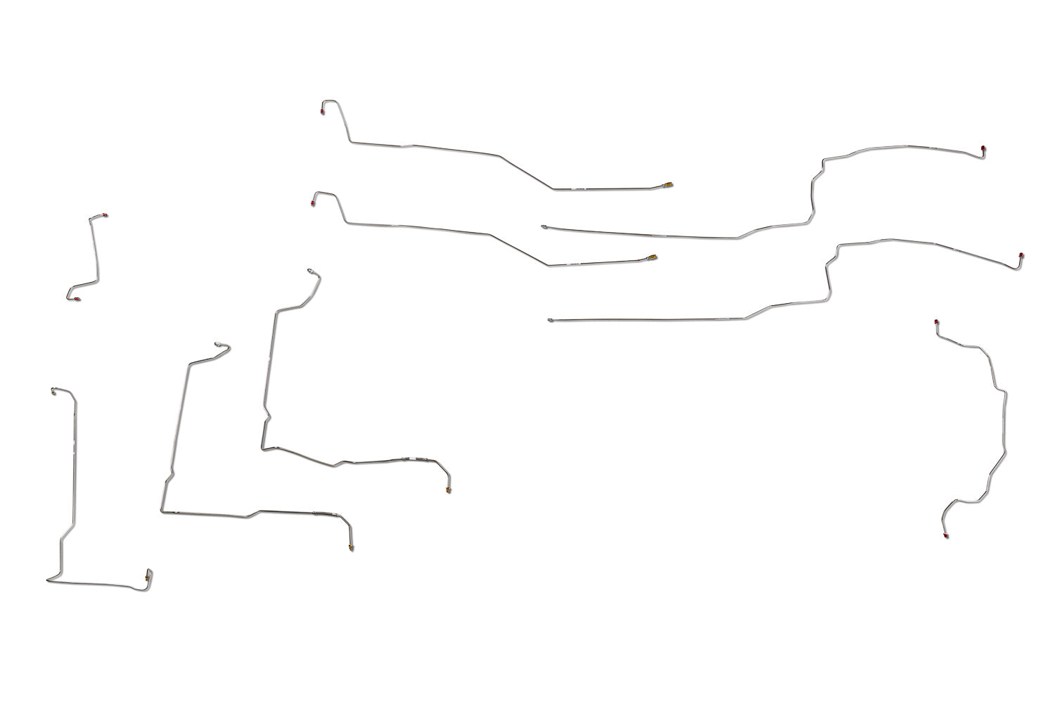 1 Master Cylinder Primary Brake Line 1/4", 1 Master Cylinder Secondary Brake Line 1/4", 1 Left Front Brake Line 3/16", 1 Right Front Brake Line 3/16", 1 Left Rear Brake Line 3/16" (in 2 easy to install sections), 1 Left Rear Brake Line 3/16", 1 Right Rear Brake Line 3/16" (in 2 easy to install sections), Does NOT include Brake Hoses