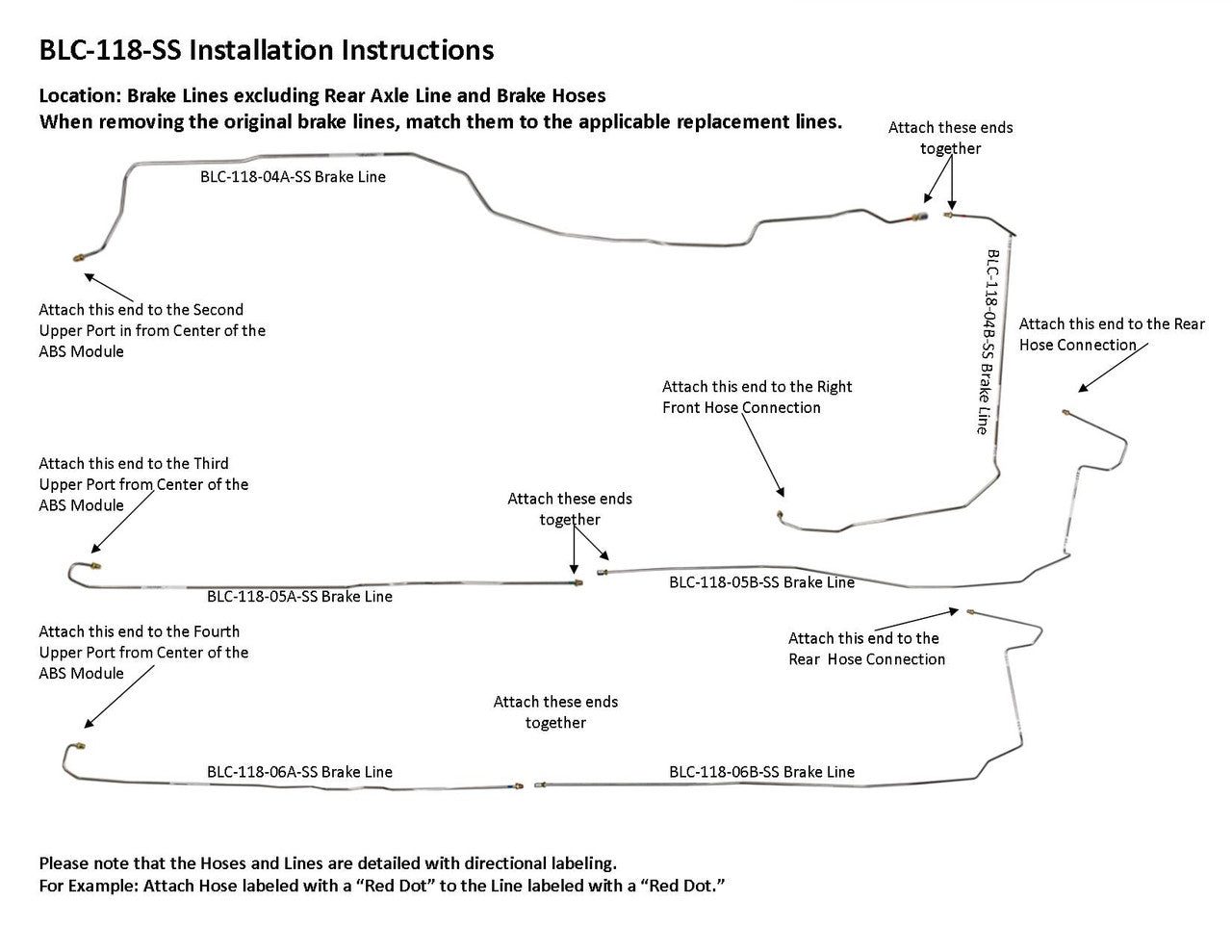 Please Note: Before installing your brake line, a shipping bend will need to be removed from the lines labeled BLC118-01-SS, BLC118-02-SS, BLC118-03-SS, BLC118-04A-SS, BLC118-05B-SS and BLC118-06B-SS. See the video below on how to remove the shipping bend