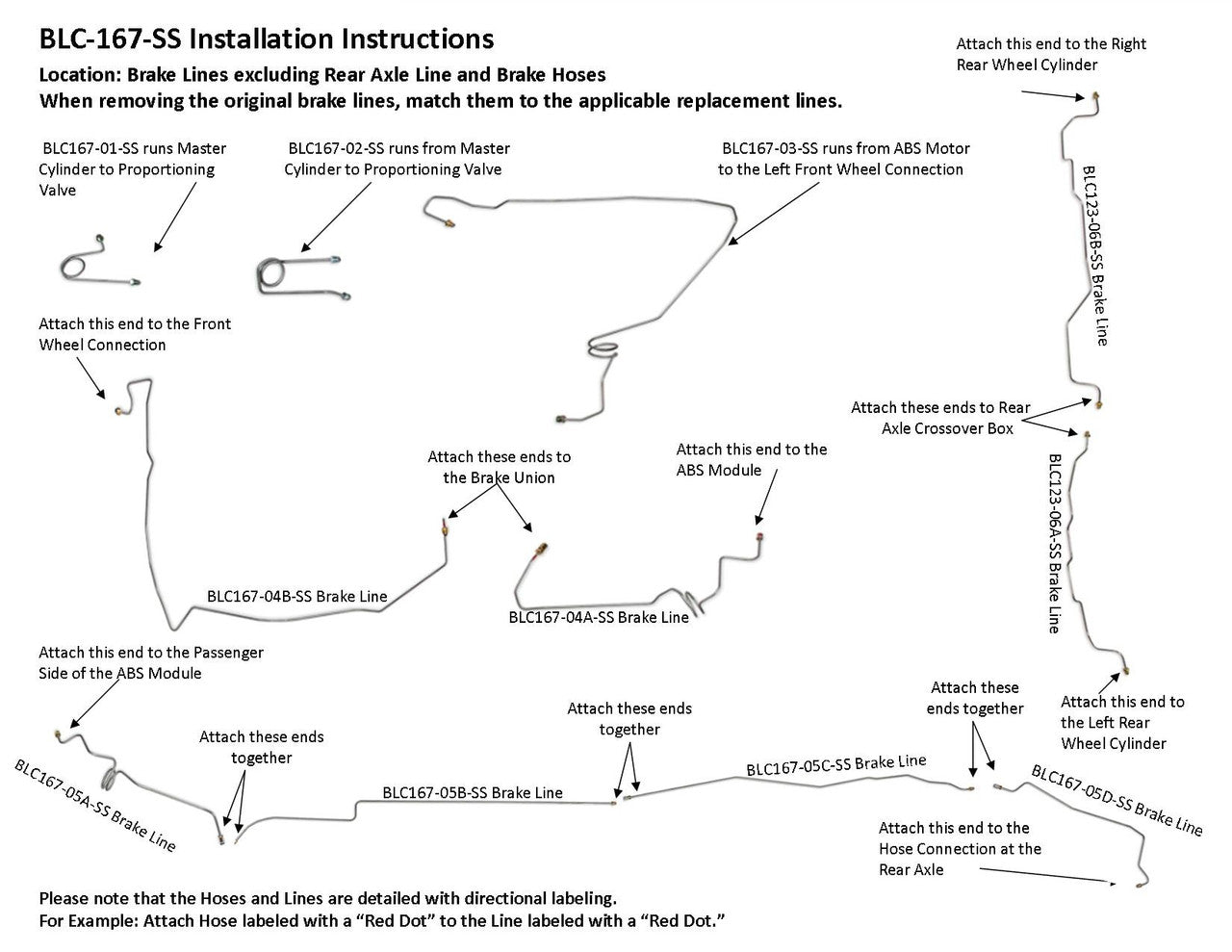 Please Note: Before installing your brake line, shipping bends will need to be removed from the lines labeled BLC167-05B-SS and BLC167-05C-SS. See the video below on how to remove the shipping bend.