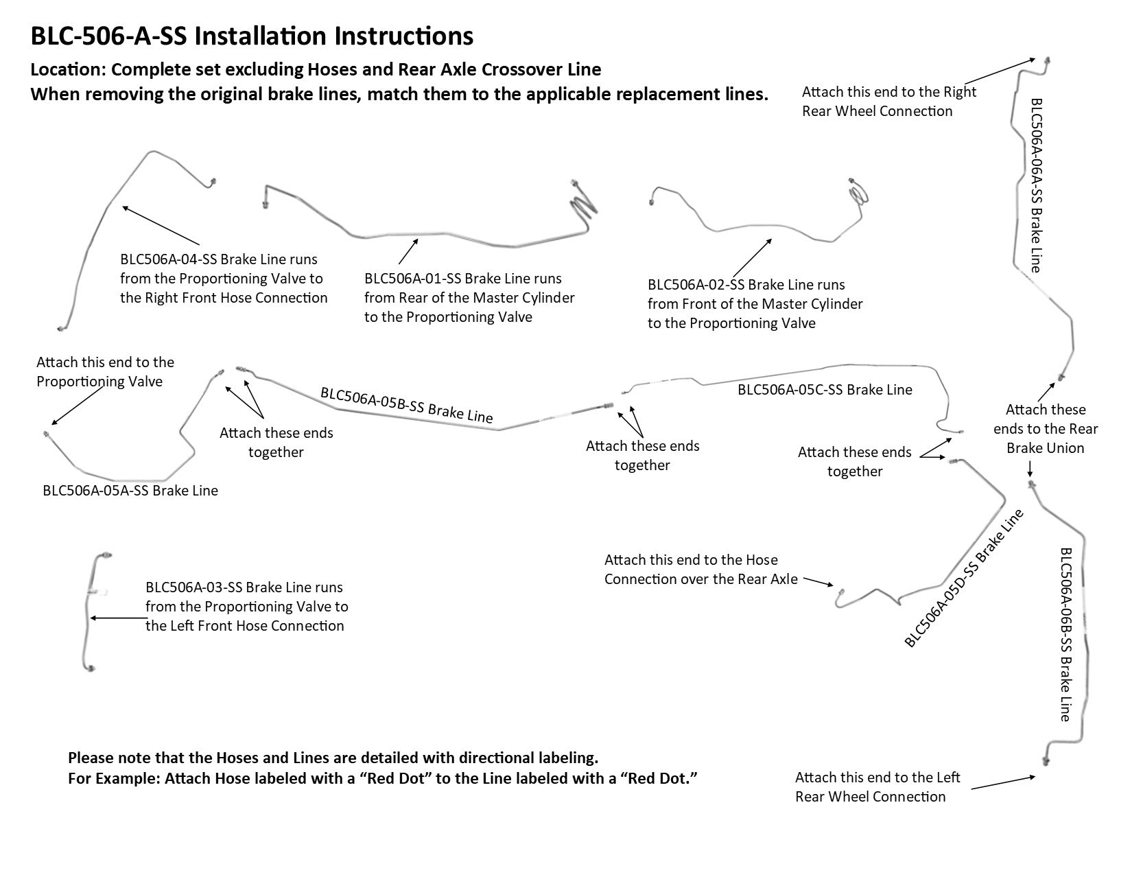 Please Note: Before installing your brake line, shipping bends will need to be removed from the lines labeled BLC506A-05B-SS and BLC506A-05C-SS. See the video below on how to remove the shipping bend