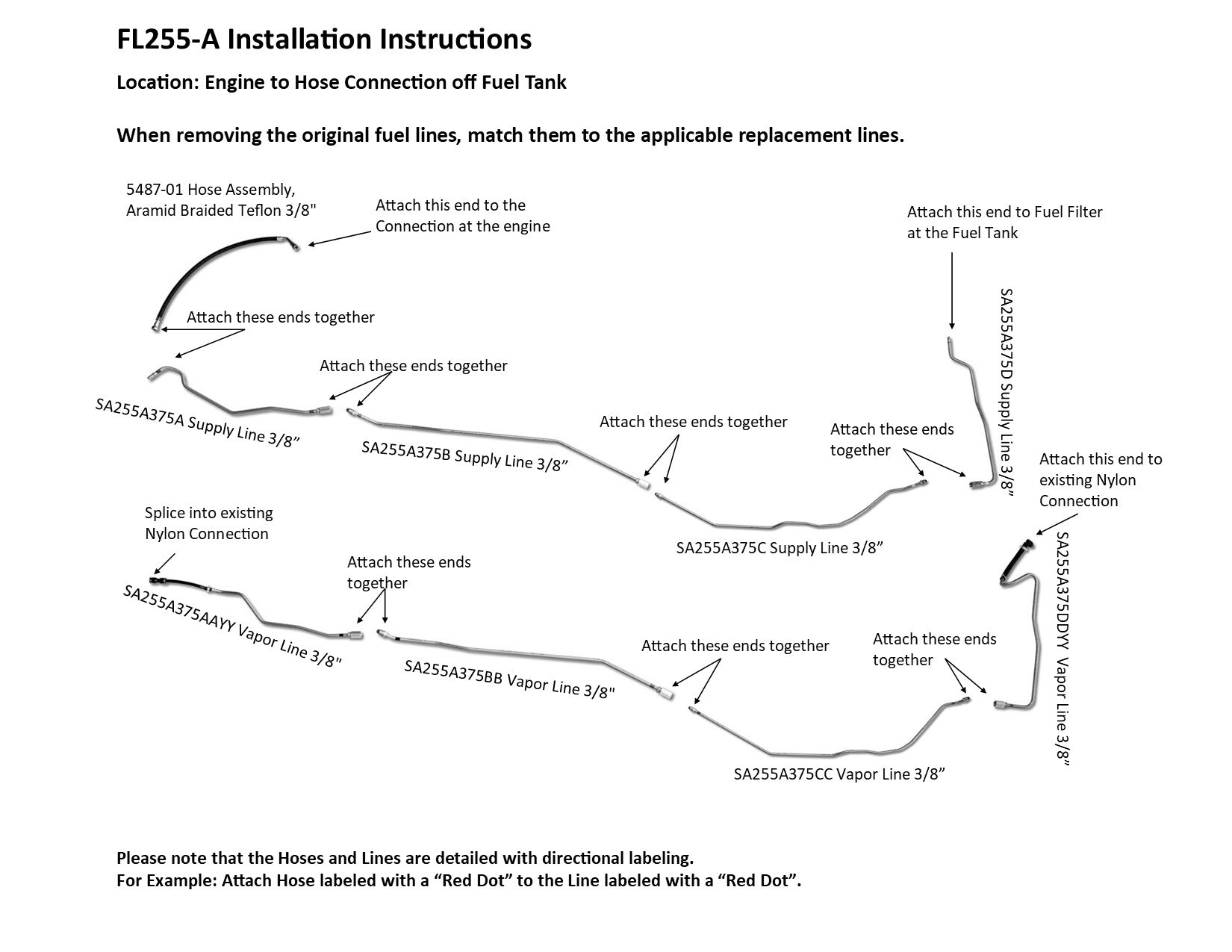 Nylon Lines: We do not produce pre-formed nylon lines and they are not included with your fuel lines. However, repair kits are available which will attach to your existing nylon lines providing new connectors for the fuel supply and return lines. The original connections are often seized and damaged during install.
