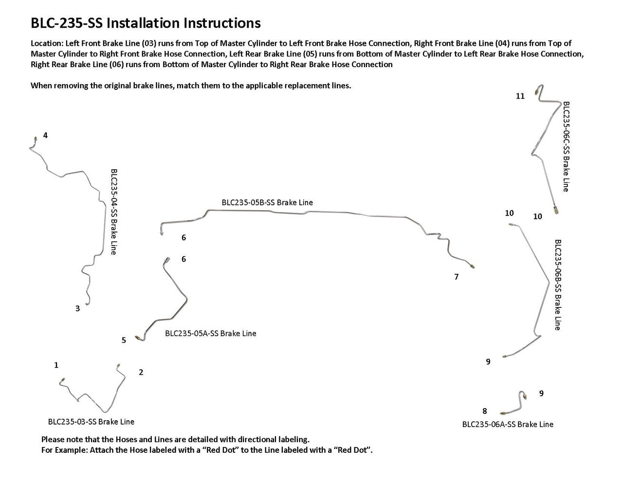 Please Note: Before installing your brake line, a shipping bend will need to be removed from the line labeled BLC235-05B-SS. See the video below on how to remove the shipping bend