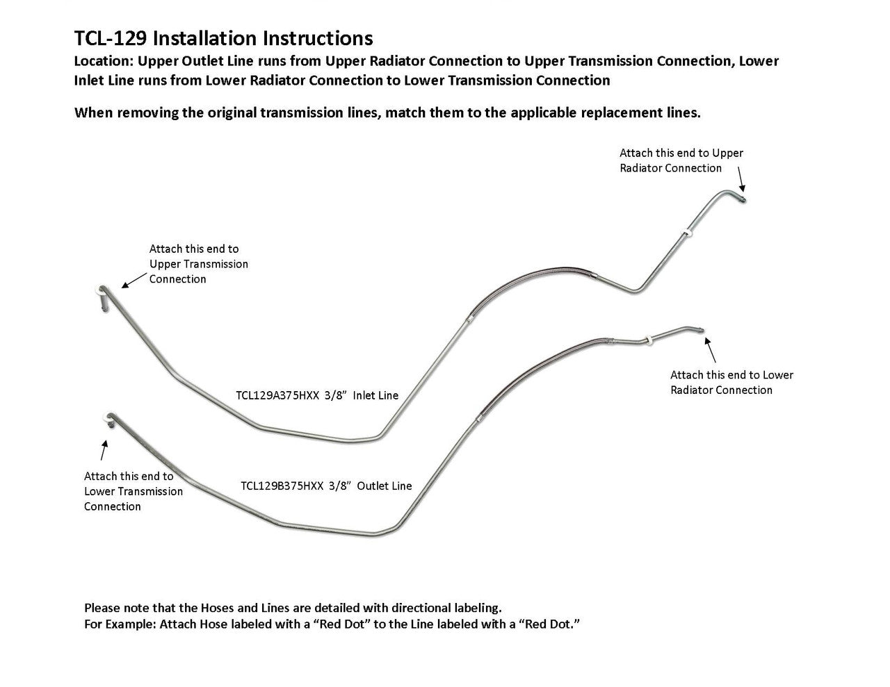Upper Outlet Line runs from Upper Radiator Connection to Upper Transmission Connection, Lower Inlet Line runs from Lower Radiator Connection to Lower Transmission Connection