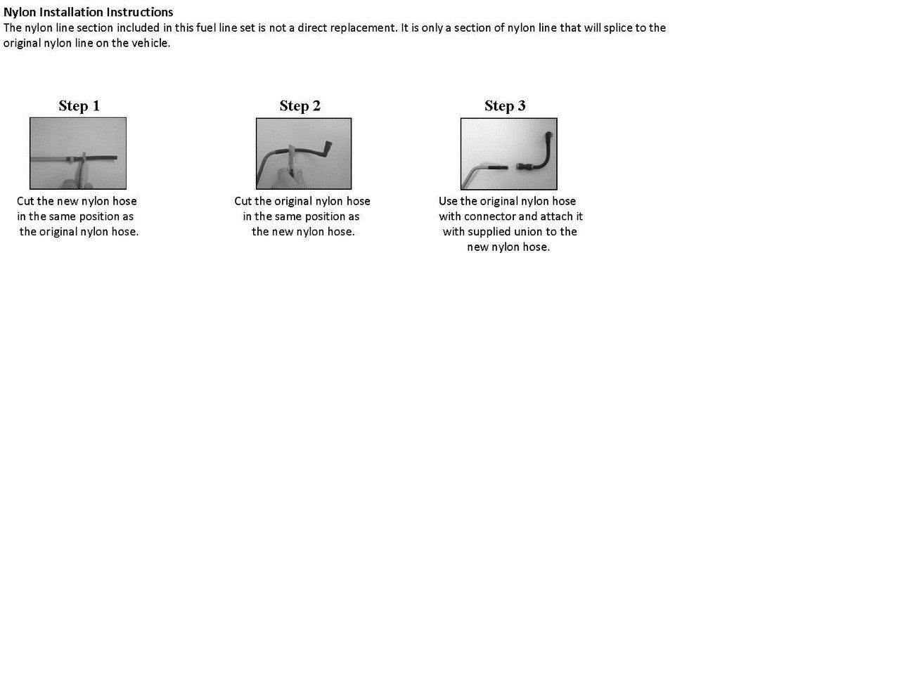 Nylon Lines: We do not produce pre-formed nylon lines and they are not included with your fuel lines. However, repair kits are available which will attach to your existing nylon lines providing new connectors for the fuel supply and return lines. The original connections are often seized and damaged during install.