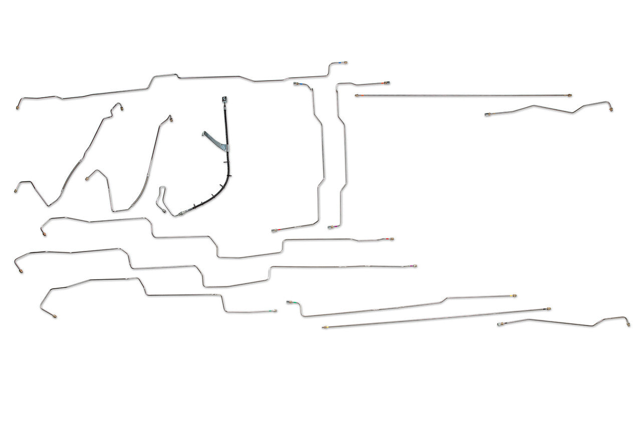 1 Master Cylinder Primary Line 1/4", 1 Master Cylinder Secondary Line 1/4", 1 Left Front Brake Line 1/4", 1 Right Front Brake Line 1/4" (in 3 easy to install sections), 1 Left Rear Brake Line 1/4" (in 4 easy to install sections), 1 Right Rear Brake Line 1/4" (in 4 easy to install sections), Does NOT include Brake Hoses
