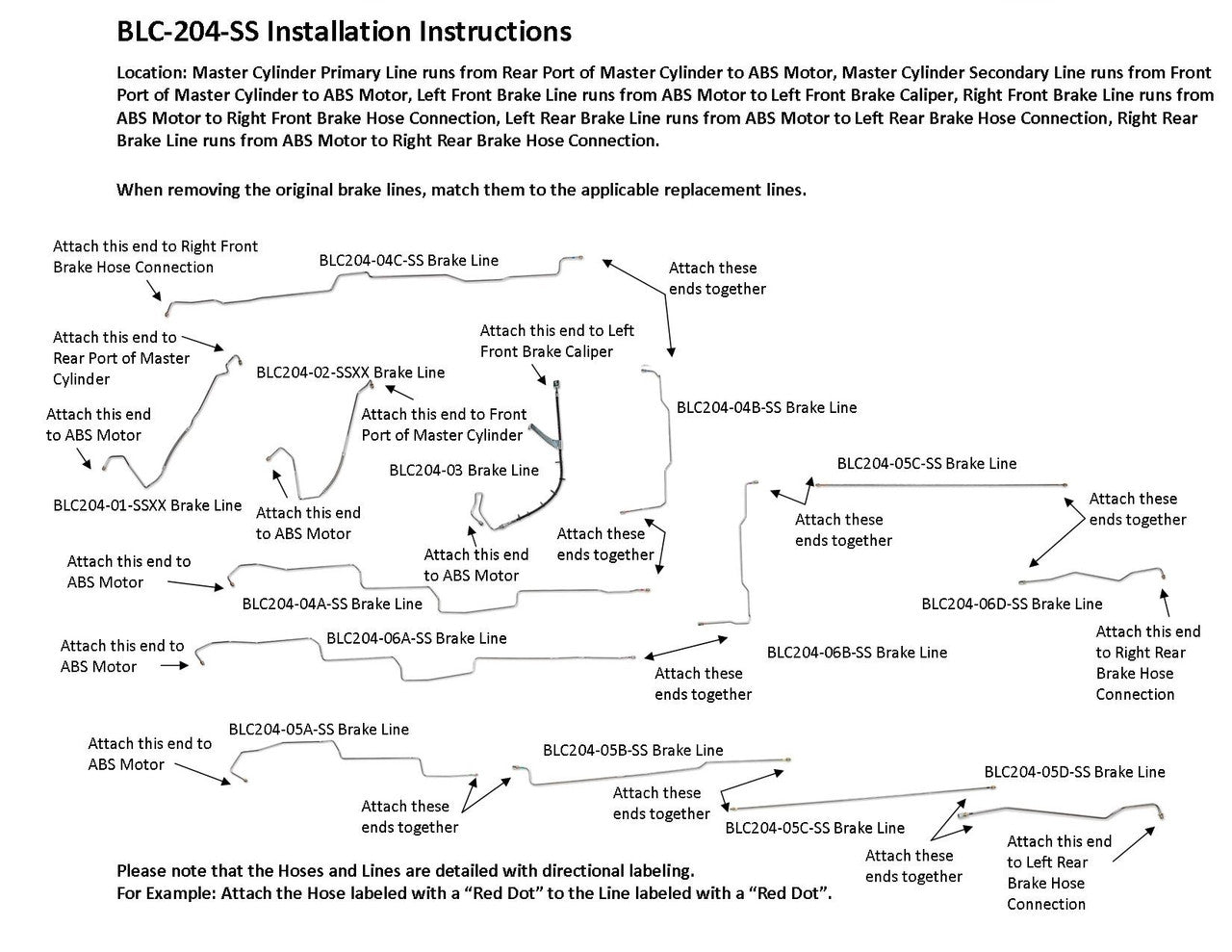 Please Note: Before installing your brake lines, a shipping bend will need to be removed from the lines labeled BLC204-04A-SS and BLC204-06A-SS. See the video below on how to remove the shipping bend