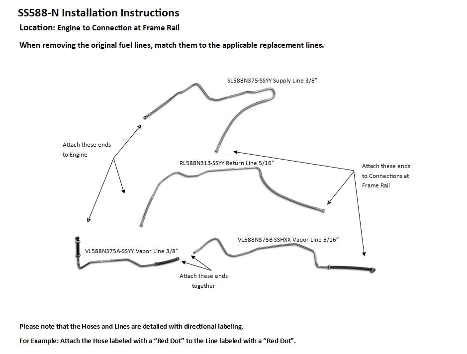 Chevy Kodiak Front Fuel Line Set 2003 C4500/5500 8.1L SS588-N1A Stainless Steel