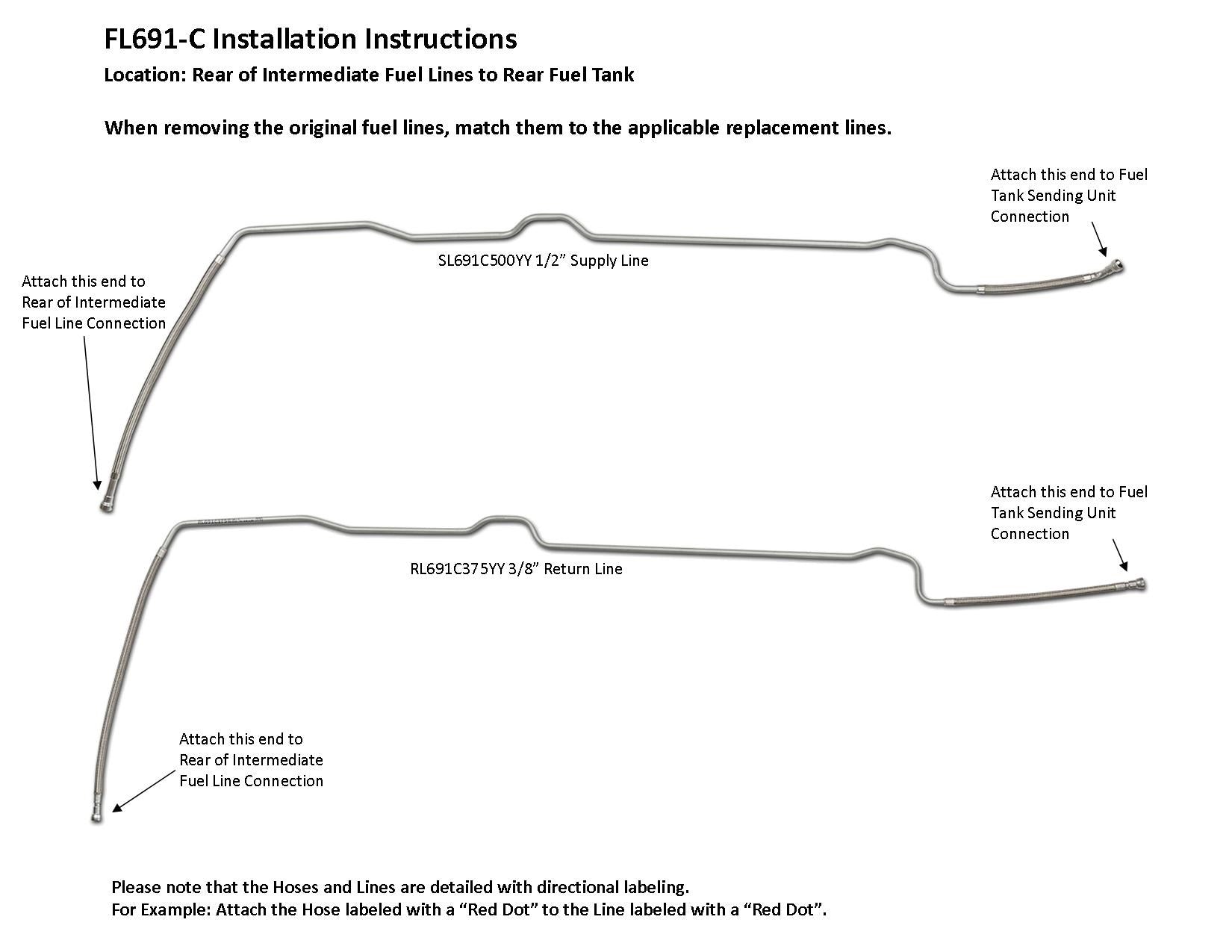 1 Supply Line 1/2", 1 Return Line 3/8", Hoses to Rear of Intermediate Lines, Hoses to Fuel Tank
