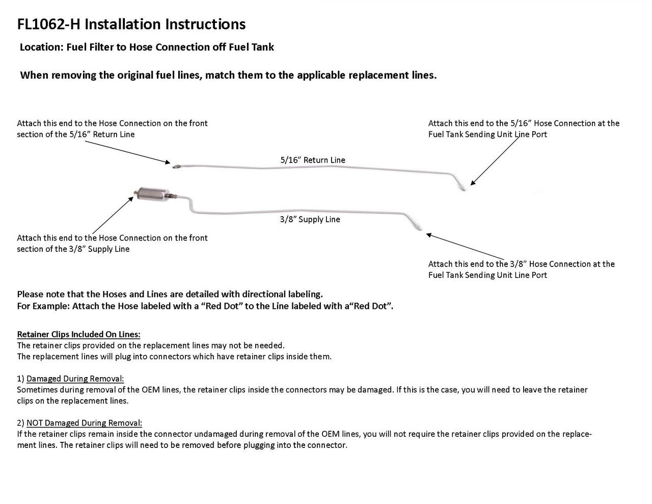 Chevy S10 Truck Rear Fuel Line Set 1996 Reg Cab 6 ft Bed 4.3L FL1062-H1A