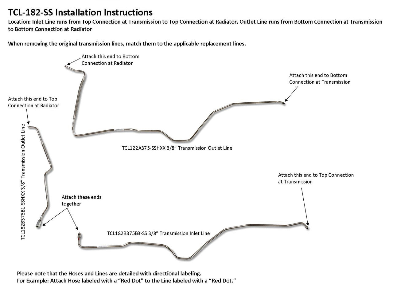 Inlet Line runs from Top Connection at Transmission to Top Connection at Radiator, Outlet Line runs from Bottom Connection at Transmission to Bottom Connection at Radiator