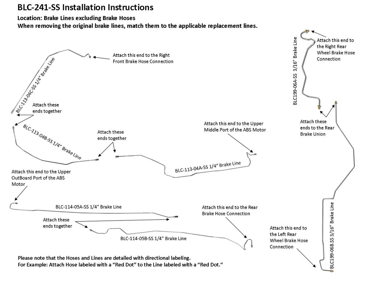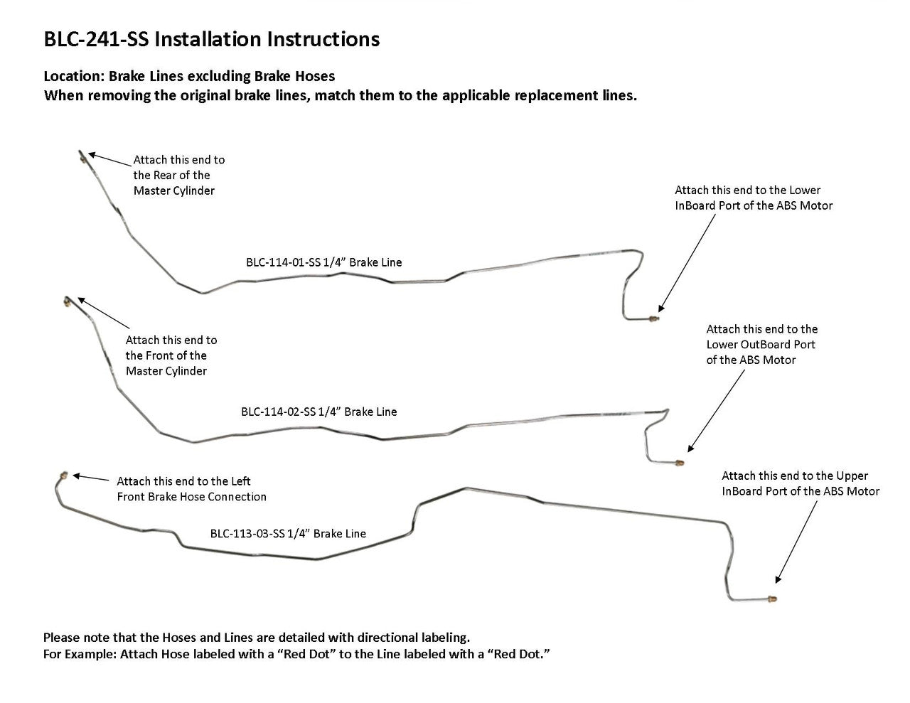Please Note: Before installing your brake line, shipping bends will need to be removed from the lines labeled BLC114-01-SS, BLC114-02-SS, BLC113-03-SS, BLC114-05A-SS and BLC114-05B-SS. See the video below on how to remove the shipping bend