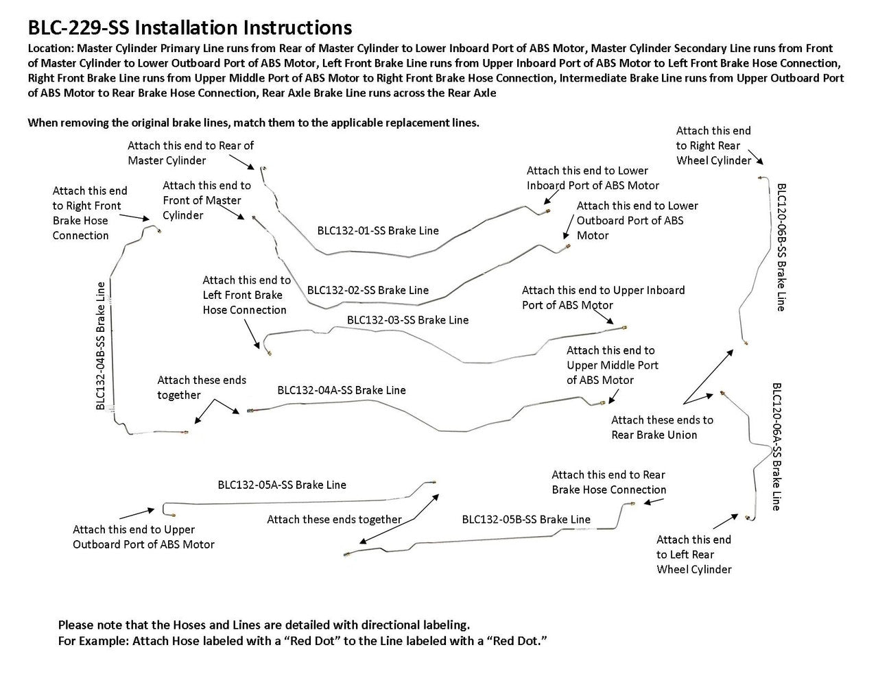 Please Note: Before installing your brake line, a shipping bend will need to be removed from the lines labeled BLC132-01-SS, BLC132-02-SS, BLC132-03-SS, BLC132-04A-SS, BLC132-04B-SS and BLC132-05A-SS. See the video below on how to remove the shipping bends