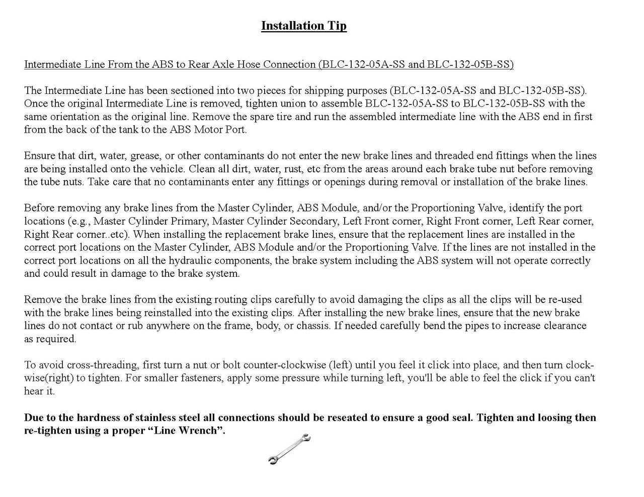 Please Note: Before installing your brake line, shipping bends will need to be removed from the lines labeled BLC133-01-SS, BLC133-02-SS, BLC132-03-SS, BLC133-04A-SS, BLC132-05A-SS and BLC132-05B-SS. See the video below on how to remove the shipping bend