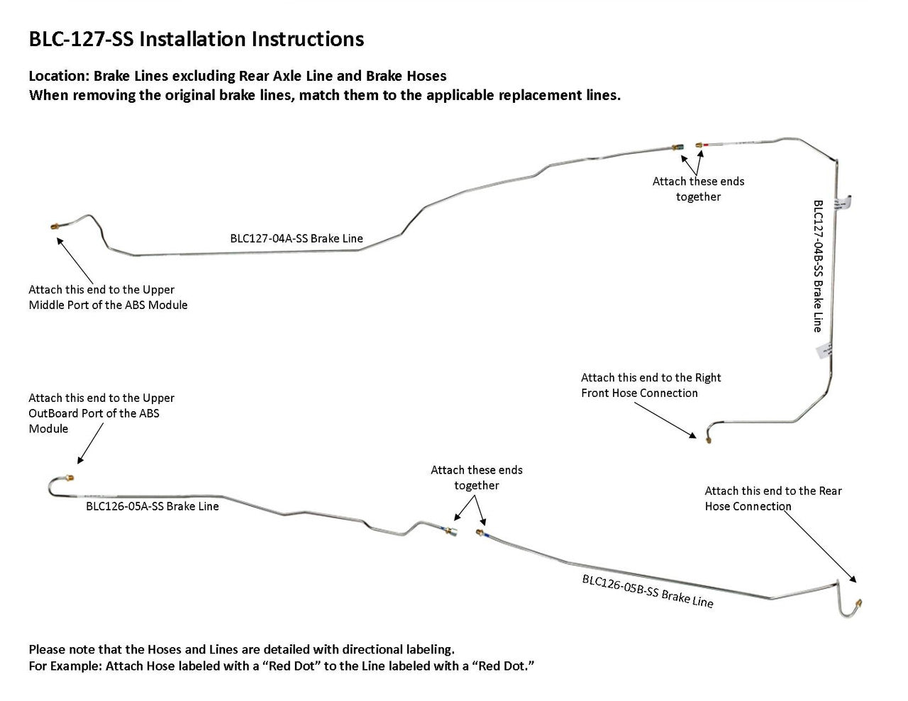 Please Note: Before installing your brake line, a shipping bend will need to be removed from the lines labeled BLC106-01-SS, BLC106-02-SS, BLC106-03-SS, BLC127-04A-SS, and BLC127-04B-SS. See the video below on how to remove the shipping bend