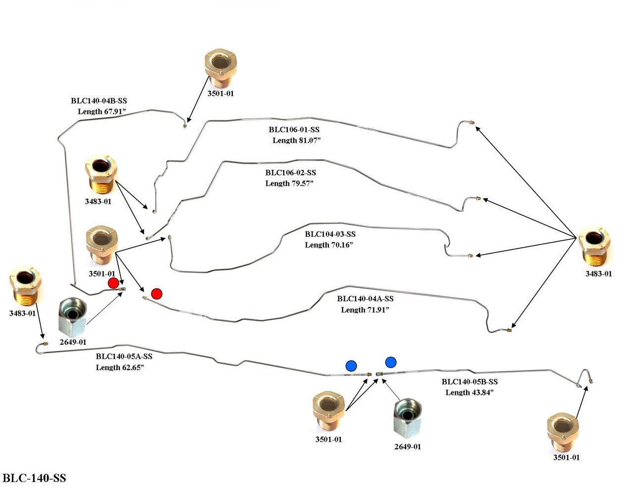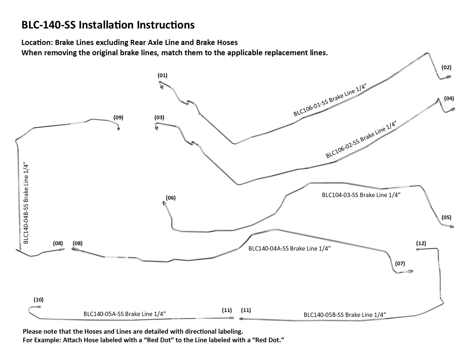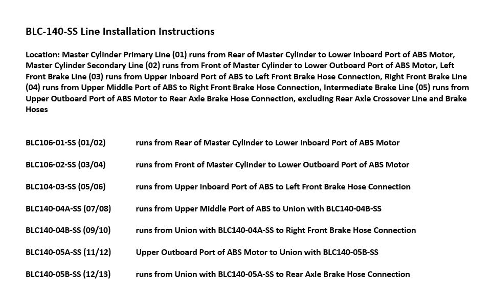 Please Note: Before installing your brake line, shipping bends will need to be removed from the lines labeled BLC106-01-SS, BLC106-02-SS, BLC104-03-SS, BLC140-04A-SS and BLC140-05A-SS. See the video below on how to remove the shipping bend