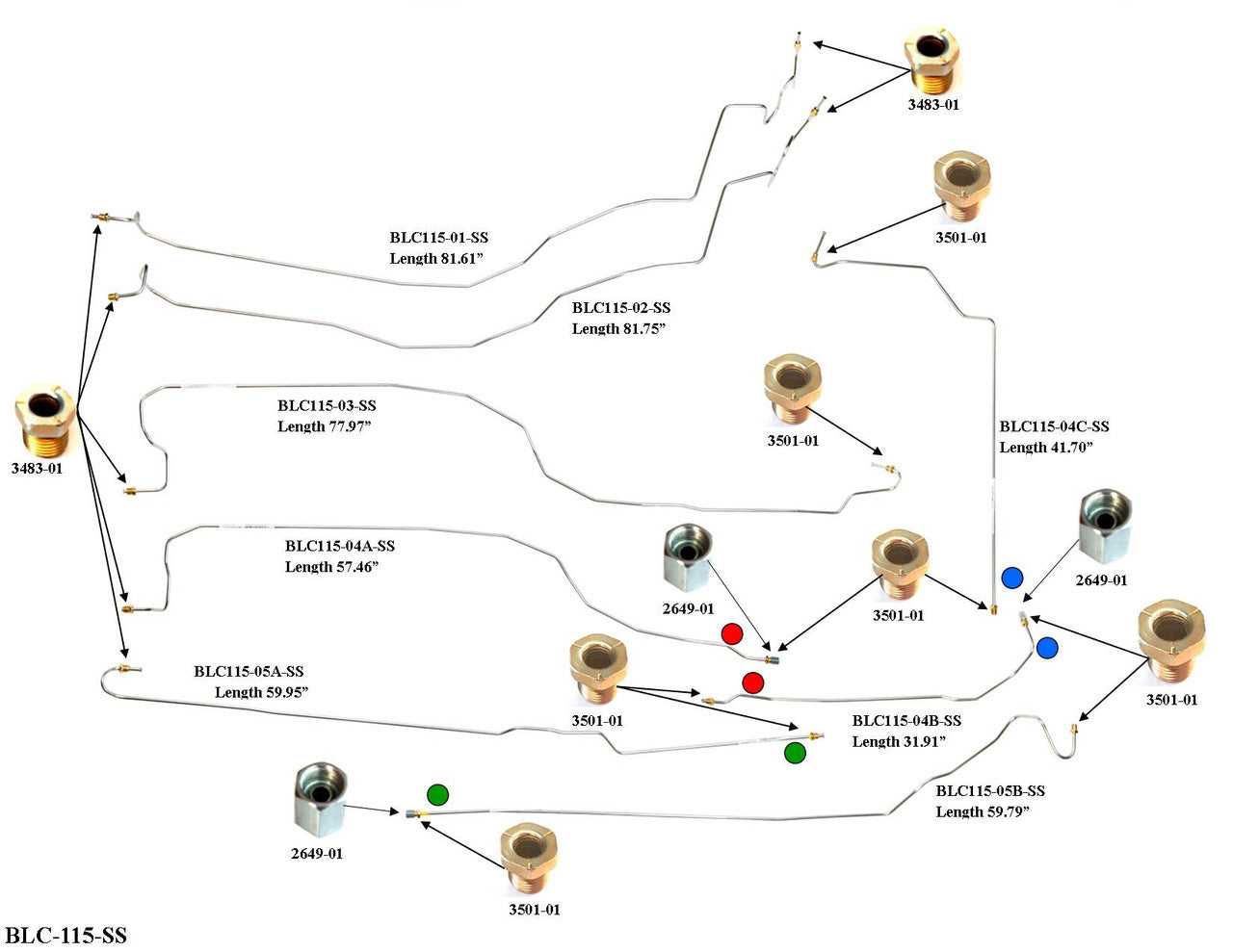 Please Note: Before installing your brake line, a shipping bend will need to be removed from the lines labeled BLC115-01-SS, BLC115-02-SS, BLC115-03-SS, BLC115-04A-SS, BLC115-04C-SS, BLC115-05A-SS, and BLC115-05B-SS. See the video below on how to remove the shipping bend