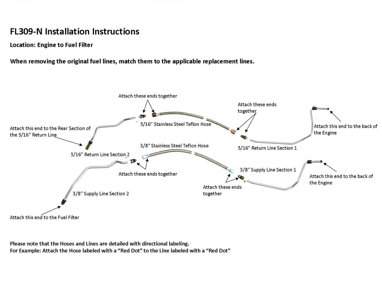 Chevy Truck Front Fuel Line Set 2000 C3500 Reg Cab & Chassis 2WD 131.5"/135.5"/141.5" WB 7.4L FL309-N1C