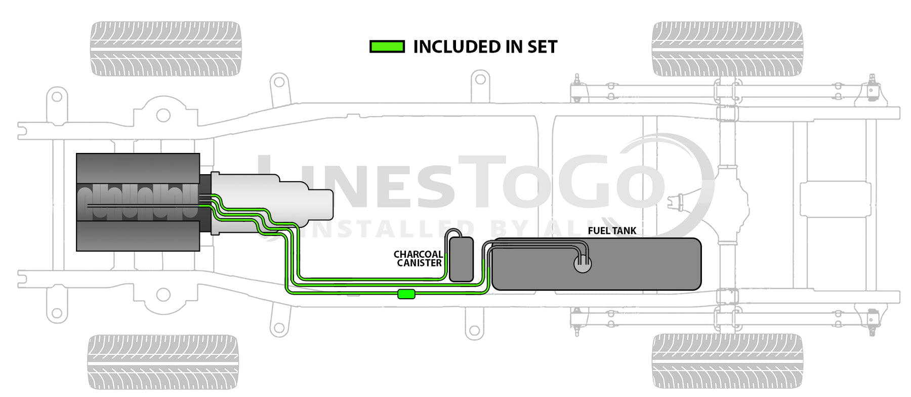 Nylon lines between the fuel line and the fuel tank are not included. We do not make the nylon lines for this vehicle. However, you can purchase a nylon repair kit, 3069-01, which will attach to your existing nylon line providing a new connector for the supply and vapor lines to connect to