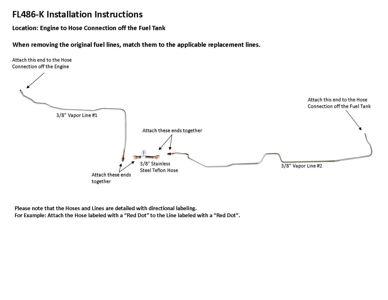 1 vapor line 3/8" ( in 2 easy to install sections) hose to join rear and front section