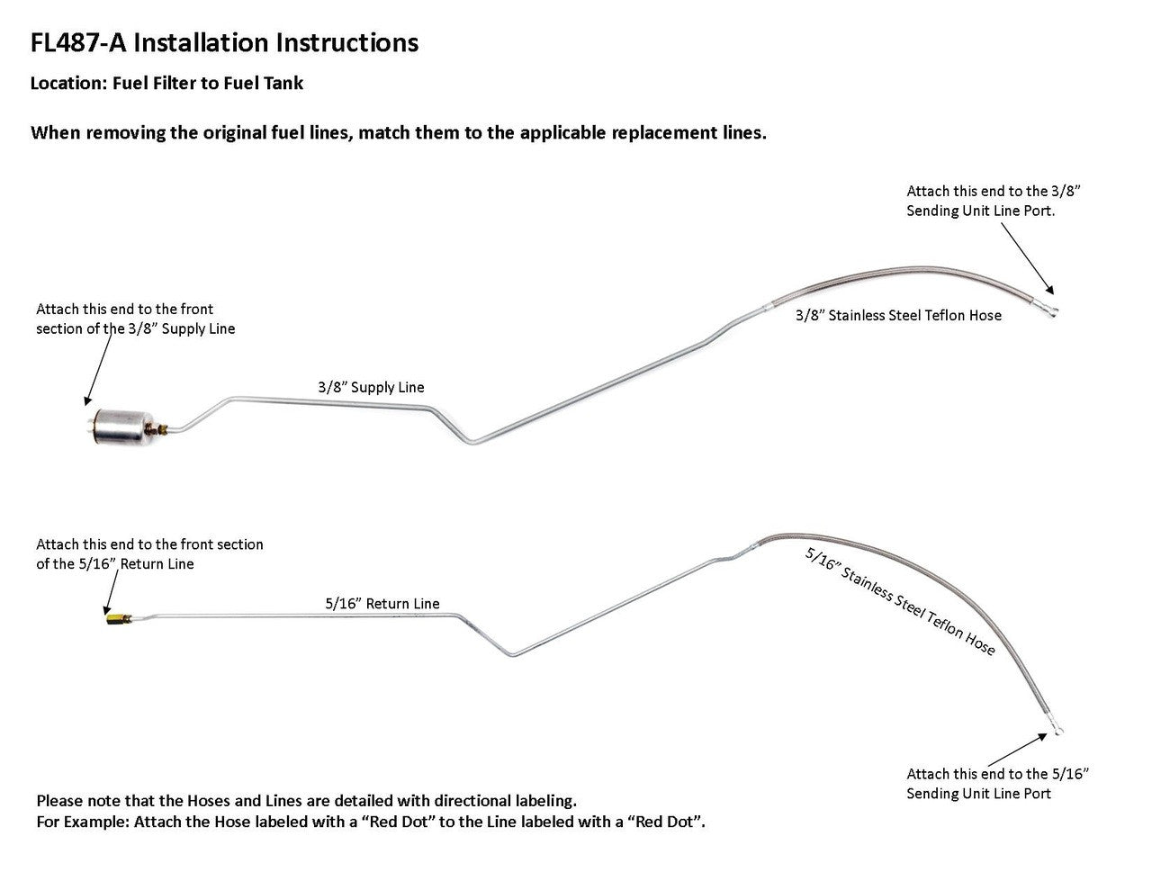 1 Supply Line 3/8", 1 Return Line 5/16", Hoses to Sending Unit Connection, 1 Union, 1 Fuel Filter