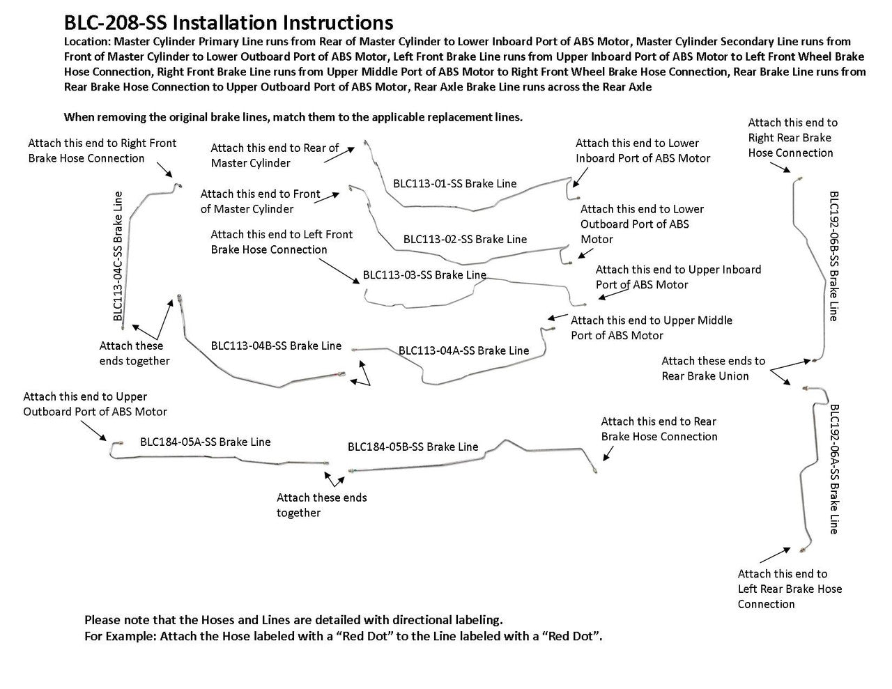 Please Note: Before installing your brake line, shipping bends will need to be removed from the lines labeled BLC113-01-SS, BLC113-02-SS and BLC113-03-SS. See the video below on how to remove the shipping bend
