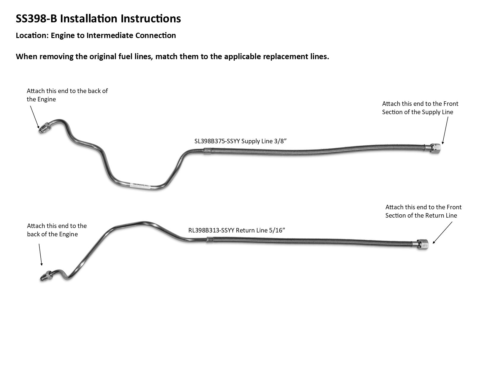Chevy Truck Front Fuel Line Set 1987 V10 4WD Reg Cab 6.5ft/8ft Bed 5.0L SS398-B5 Stainless Steel
