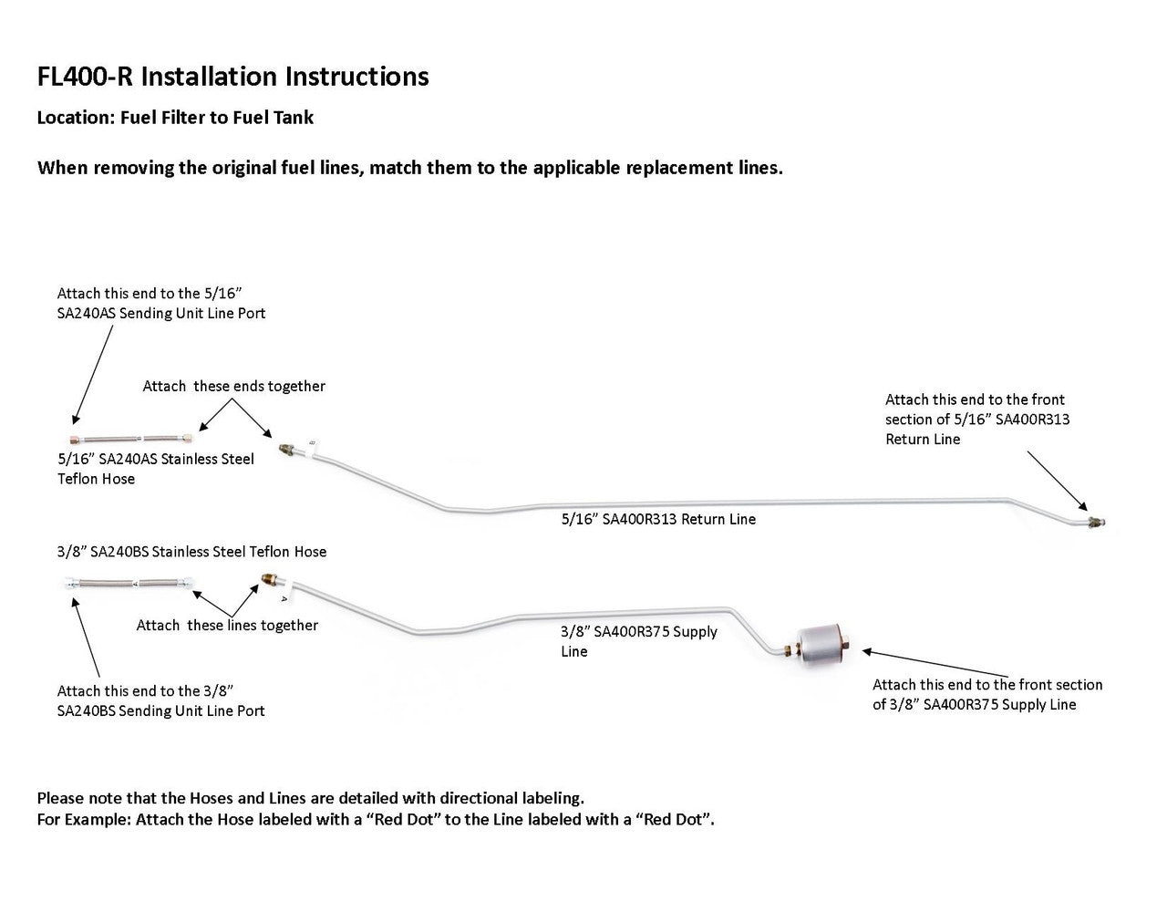 1 supply line 3/8", 1 return line 5/16", hoses to sending unit connection, 1 fuel filter