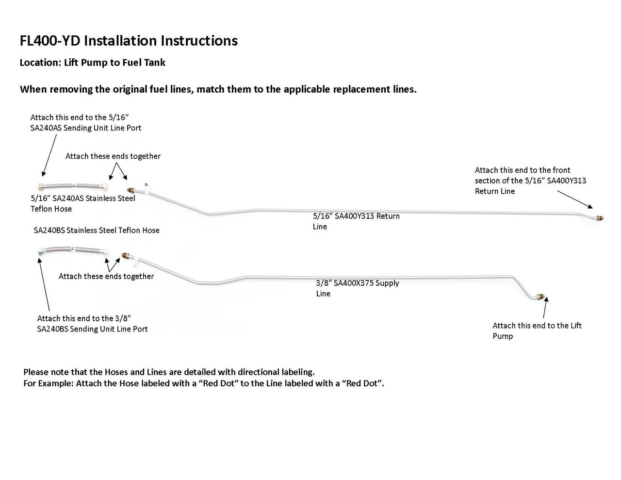 1 supply line 3/8", 1 return line 5/16", hoses to sending unit connection