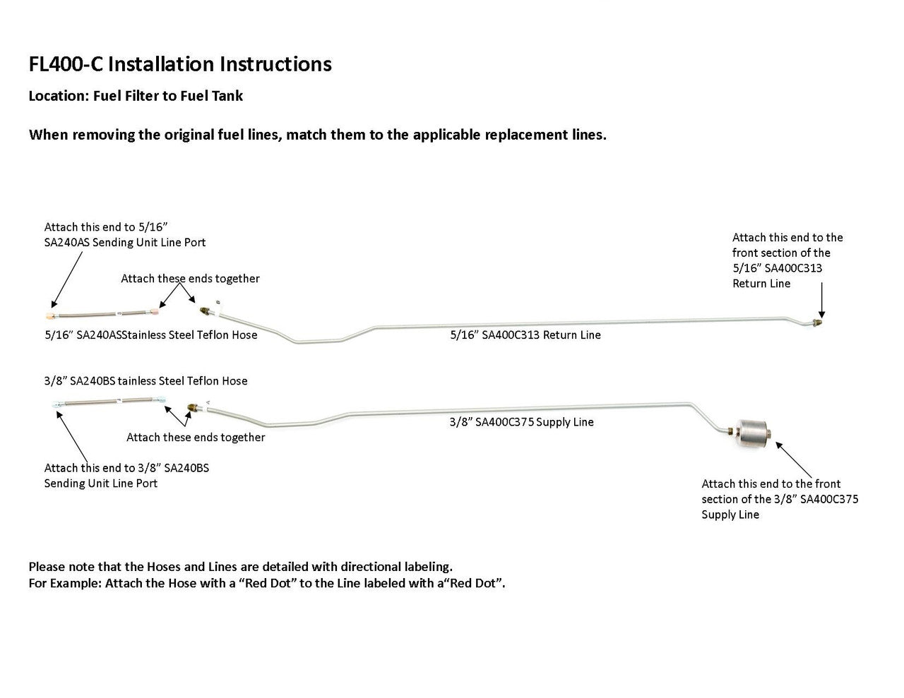 1 supply line 3/8", 1 return line 5/16", hoses to sending unit connection, 1 fuel filter