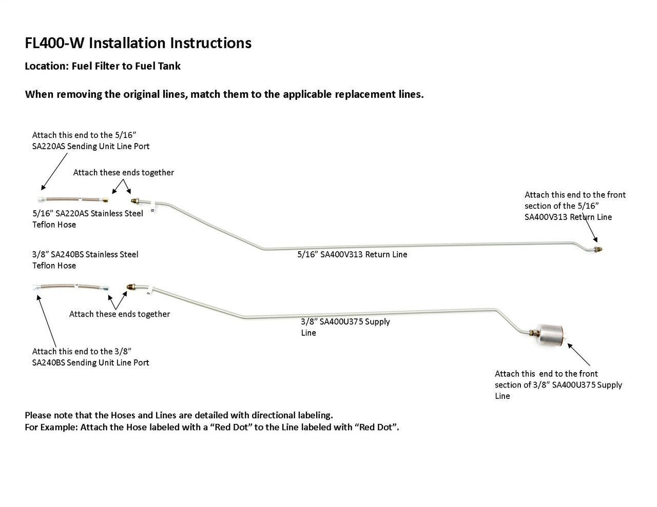 1 supply line 3/8", 1 return line 5/16", hoses to sending unit connection, 1 fuel filter