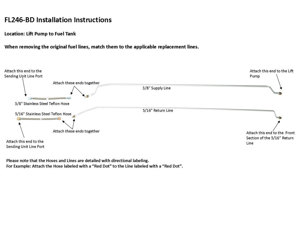 1 supply line 3/8", 1 return line 5/16", hoses to sending unit connection