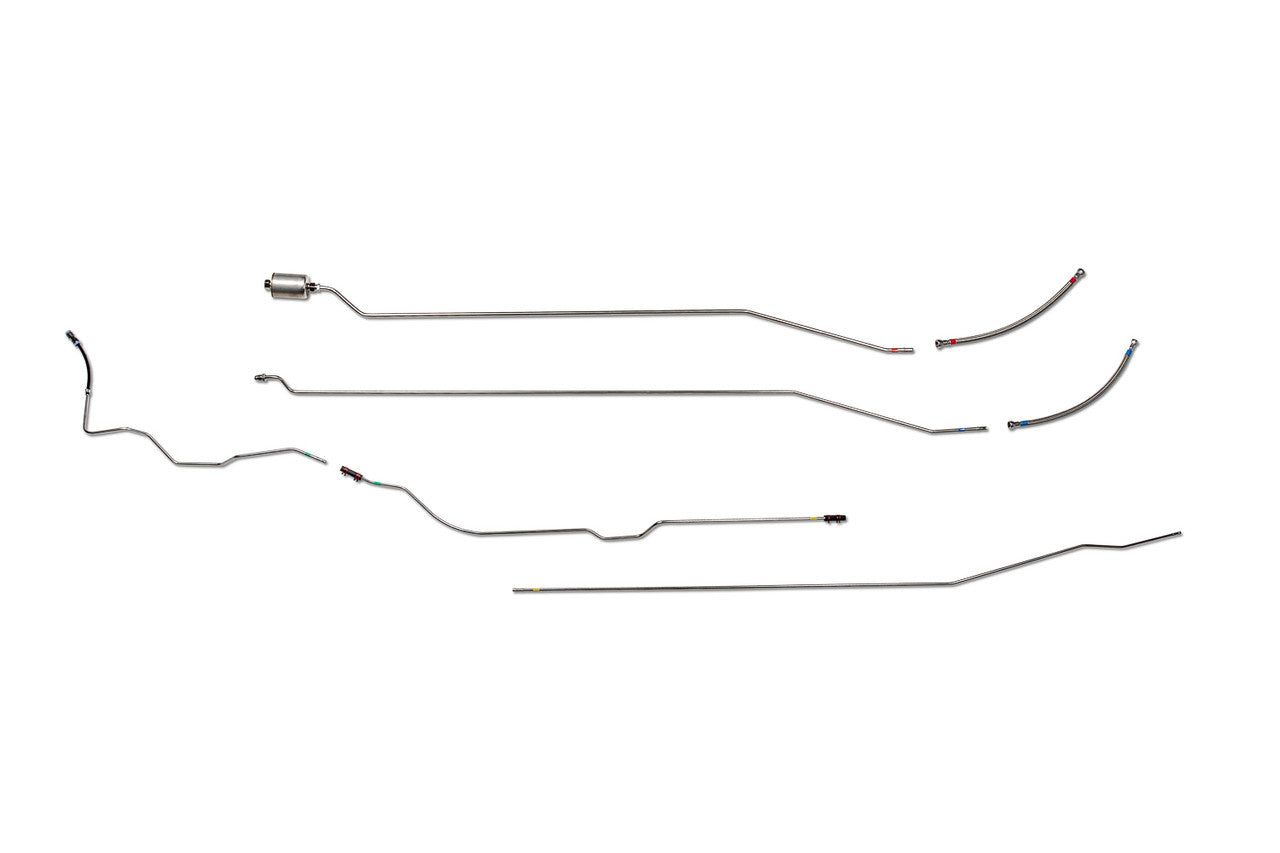 1 supply line 3/8", 1 return line 5/16", 1 intermediate vapor line 1/4" (3 easy to install sections), hoses to sending unit connection, 1 fuel filter