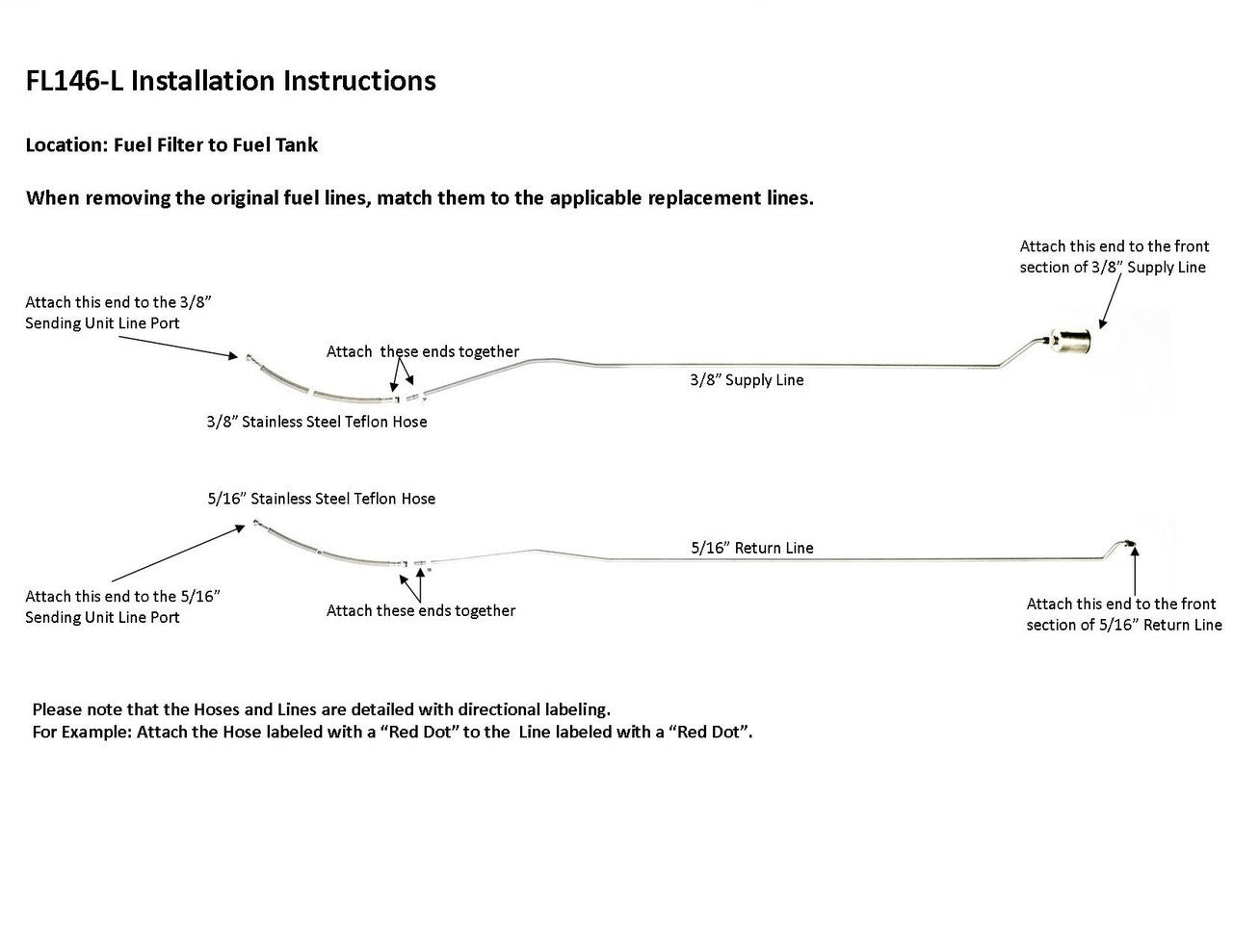 1 supply line 3/8", 1 return line 5/16", hoses to sending unit connection, 1 fuel filter